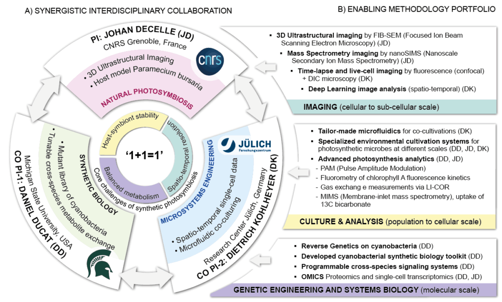 This project is coordinated by Johan Decelle (CNRS, Cell and Plant Physiology Lab), Daniel Ducat (Michigan State University, USA) and Dietrich Kohlheyer (Research Center Jülich, Germany)